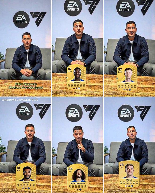 阿扎尔选切尔西现役五人小队:凯塞多、帕尔默、里斯在列
