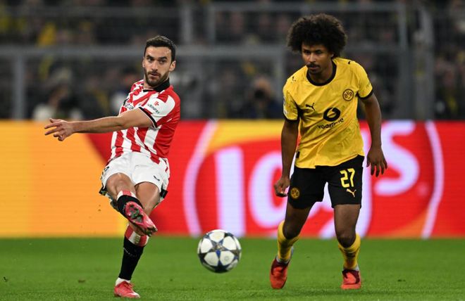 两队此前在欧战赛事有过12次碰面,各自取得6场胜利打成平手,不过阿森纳此前3次主场面对奥林匹亚科斯却是连续输球。此番再度主场对阵这家希腊豪门,阿森纳上半场踢得不错。第12分钟,厄德高送出直塞,约克雷斯禁区内起脚低射被扑了一下击中立柱弹出,马丁内利跟进补射得手,帮助阿森纳1-0领先,这个比分也持续到上半场结束。下半场补时阶段,萨卡破门帮助阿森纳2-0锁定胜局。勒沃库森VS埃因霍温上半场结束,比分还是0-0平。下半场,科法内破门得分,帮助勒沃库森1-0领先,随后萨伊瓦里帮助埃因霍温1-1扳平。那不勒斯VS葡萄牙体育上半场结束,那不勒斯依靠霍伊伦的破门,主场暂时1-0领先。下半场,路易斯-苏亚雷斯点球破门,帮助葡萄牙体育1-1扳平比分,很快霍伊伦再度破门,帮助那不勒斯2-1拿下胜利。多特蒙德VS毕尔巴鄂