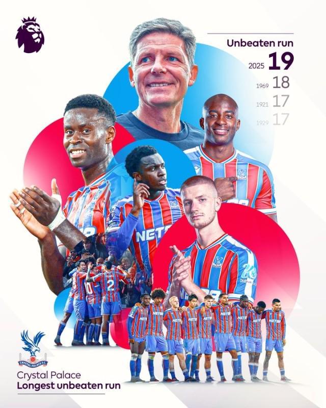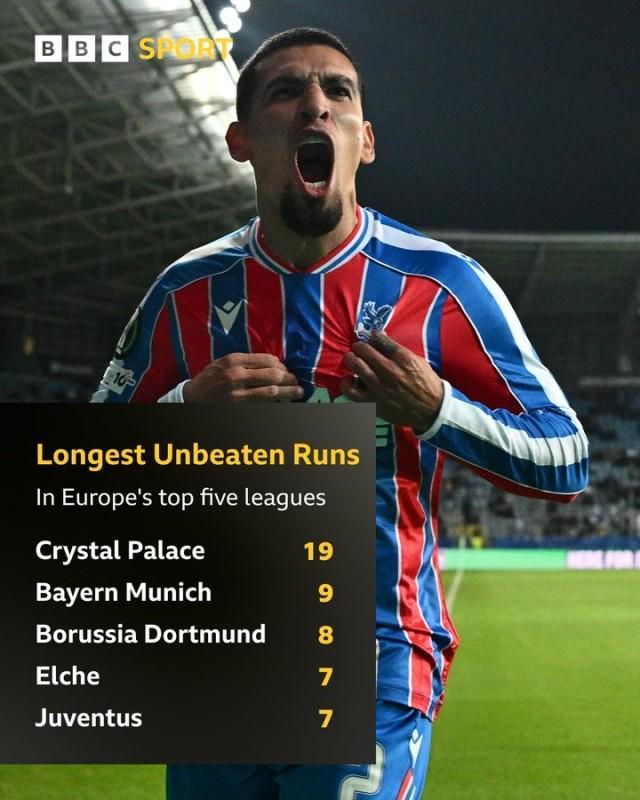 水晶宫跨赛季19场不败创队史纪录英超 10-03 09:59欧协杯第2轮,比赛后段10打11的水晶宫2比0战胜基辅迪那摩,第31分钟穆尼奥斯首开纪录,第58分钟恩凯蒂亚再下一城,博尔纳·索萨第74、76分钟连吃两黄。 水晶宫赢得队史首场欧战胜利,跨赛季连续19场不败,超越1969年18场不败,刷新队史纪录;格拉斯纳的球队也是目前五大联赛连续不败场次最多的,其后是拜仁的9场不败。 水晶宫上一次输球是今年4月16日,客场0比5纽卡斯尔联;本赛季各项赛事11场不败(5胜6平,点球大战算平局),在英超积分榜高居第3位。