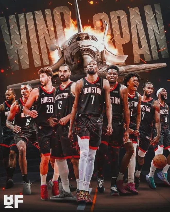新赛季展望火箭上赛季的得分王杰伦·格林以及防守悍将狄龙在休赛期被交易至太阳,但是随着两届总冠军得主杜兰特加盟,火箭的目标是冲击总冠军。根据统计,火箭有多名球员臂展都达到了7英尺(约2.13米),包括阿门·汤普森、芬尼-史密斯、申京、小贾巴里·史密斯、杰夫·格林、伊森、亚当斯、卡佩拉和杜兰特。在“死亡五小”家喻户晓之后,火箭有可能开启“死亡五锋”时代。比较可惜的是,主力控卫范弗利特在训练营中遭遇右膝前交叉韧带撕裂,预计赛季报销。但是火箭新赛季的主要轮换阵容依然强劲。后卫:谢泼德、阿门·汤普森、阿隆·霍乐迪、奥科吉锋线:杜兰特、芬尼-史密斯、小贾巴里·史密斯、伊森和杰夫·格林中锋:申京、亚当斯和卡佩拉攻防一体的阿门、得分机器杜兰特、申京的策应单打、亚当斯的篮板挡拆、卡佩拉的挡拆空接,会让不少对手感到头疼。杜兰特会解决季后赛关键时刻无人得分的问题,其余年轻的球员又能弥补37岁杜兰特体力下滑的不足。