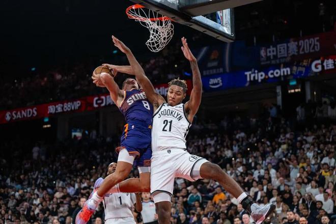 除了手握NBA赛事版权的咪咕和腾讯对本届NBA中国赛进行了直播外,央视电视端及其新媒体端的央视频,都没有对本届NBA中国赛进行直播,也可以反映出NBA与中国大陆市场仍未完全“破冰”。时隔2190天,NBA与中国赛这两个词语,再次联系在一起。10月10月、12日,菲尼克斯太阳和布鲁克林篮网在中国澳门的威尼斯人综艺馆上演了两场对决。有意思的是,这两个日子也颇有含义——2019年的10月10日和12日,正是上一次NBA中国赛在上海和深圳举办的比赛时间。由于前火箭队总经理的错误言论,导致这两场NBA中国赛当时在国内几乎“0声量”,国内媒体纷纷选择避而不谈。能够顺利完赛,已是最佳体面收场。恰巧,篮网也是6年前参与NBA中国赛的队伍之一。只不过当时,蔡崇信还没有成为这支NBA球队大股东。时过境迁,经过6年时间的等待之后,NBA终于再度迎来在线下与中国球迷见面的机会。毫无疑问,这是NBA与中国市场的又一个关键节点。此次顺利回归,NBA也带着全新的姿态和诚意,试图重新赢得中国球迷的心。在经历了之前的波折后,NBA更加明白中国市场的重要性以及球迷的情感需求。但客观来看,中美关系一波三折以及NBA与中国市场的裂痕仍未完全修复等问题的存在,也给NBA在中国市场的全面复苏,带来了不少的挑战和不确定性。但至少值得庆幸的是,NBA的一只脚已经踏入了中国的南大门。再次踏入中国大陆,或许并不会让球迷等待太久。NBA中国赛回来了因为那一句话,让NBA损失了几亿美金。从那时候起,中国从曾经最赚钱的海外市场,到本土赞助商主动选择“割席”,皆因前火箭队总经理在社交媒体上的谬论。NBA总裁亚当·肖华(Adam Silver)曾经表示,退出中国市场以及中国电视台停止转播赛事,给NBA造成了数以亿计的损失。从最初的禁播、复播,再到如今线下赛正式回归,这一路走来,NBA在中国市场经历了诸多波折与起伏。NBA中国赛正式回归,让球迷们有了亲临现场的机会。球场内座无虚席,欢呼声、呐喊声此起彼伏,仿佛要将过去短暂被遏制的热情,全部释放出来。客观来说,太阳和篮网这两队阵容星味并不够浓——只有当德文·布克和曾凡博出场的时候,才能够引起全场球迷的欢呼。更普遍的情况是,不少球迷甚至都不认识出现在本次NBA中国赛主KV的三名篮网队球员。
