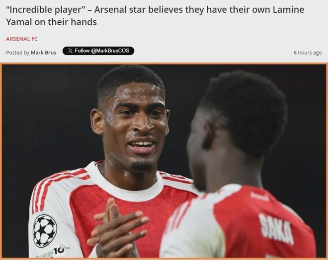 阿森纳官方盘点了枪手们在国际比赛的表现。梅里诺+祖比门迪:西班牙在世预赛中4-0击败保加利亚,此役梅里诺首发踢满全场,并头球完成梅开二度!这样的话,梅里诺在4场世预赛中已经打进6球!祖比门迪本场比赛同样首发登场,出战了62分钟。拉亚作为替补没有出场。埃泽+萨卡+赖斯+斯凯利:英格兰客场5-0大胜拉脱维亚,提前出线挺进明年世界杯。此役埃泽在第60分钟替补登场,打进了球队第5球,同时也是他的第2粒国家队进球;萨卡本场比赛首发出战60分钟,并送上了1个助攻;赖斯同样首发出战了60分钟;斯凯利首发并踢满全场。卡拉菲奥里:意大利3-0战胜以色列,此役卡拉菲奥里首发踢满全场,并帮助球队取得零封。马丁内利:巴西在友谊赛中2-0领先的情况下遭到日本3球翻盘,此役马丁内利首发出战了57分钟,并打进了1球,但这并不足以帮助巴西取胜。加布里埃尔作为替补球员没有出场。莫斯克拉:西班牙在u21欧青赛预选赛中2-1战胜芬兰,此役莫斯克拉首发踢满全场。特罗萨德:比利时客场4-2战胜了威尔士,此役特罗萨德首发踢满全场,并打进了球队的第4球!萨利巴:法国在世预赛中2-2客平冰岛,此役萨利巴首发并踢满了全场。哲凯赖什:瑞典主场0-1不敌科索沃,此役哲凯赖什踢满全场。瑞典也因此确定无缘直通世界杯。比赛着实是不少,坦白说我都没有看直播,无法点评,就看了下集锦。梅里诺这干脆打中锋得了,简直高效的离谱,在国家队也是,他在禁区里的射门和头球相当有准头,说不定最适合他的位置还真是中锋或伪中锋,比踢中场强!4场世预赛6个进球,西班牙终于有神锋了!英格兰现在离不开阿森纳,就这几场比赛来说,哪场都有枪手建功,不是进球就是助攻!本场比赛埃泽终于得到机会,并且上场后不久就用个人能力在左路内切后破门得分,萨卡也为凯恩送上了助攻,还好他和赖斯只踢了60分钟……英格兰都出线了,下次用用替补吧!也该锻炼新人了!小马丁在友谊赛难得获得了首发机会,并且他延续了最近高效的表现,在禁区左侧反越位接到帕奎塔的挑传后左脚抽射破门!小马丁最近状态好,回到联赛也继续重用下吧!萨利巴和哲凯赖什最近踢了太多比赛,尤其是德尚完全没有轮换核心的概念一样,不用到受伤不罢休……法国赶紧下轮晋级吧,德尚练练新人。哲凯的话,瑞典在世预赛上表现可谓一塌糊涂,目前仅理论上有通过附加赛晋级的可能性,很可能哲凯明年真的要无缘世界杯了……另外,说到哲凯赖什,我看很多朋友纠结他的译名,其实我一开始还叫过“乔克雷斯”,但在枪迷的提醒下改成了哲凯赖什,目前比较通用的译名还有约克雷斯。说实话我本人并不纠结怎么翻译才是正确的,我不懂那些匈牙利语发音还是瑞典发音,我认为关键是枪迷知道他是谁就行了,你觉得怎么顺口就怎么说,或者怎么打字,这都无所谓,咱们知道他是谁就行了,哲凯目前是新华社译法,所以我就不改了。其实真追求精准你就念他的原名,写他的名字Gyökeres,这绝对错不了,你用中文怎么也发不出人家准确的读音的,何必纠结……语言最重要的意义是交流,无障碍即可。莫斯克拉最近接受了TA的采访,这名中卫高度评价了他的队友道曼,并称其未来可以成为“世界级球员”。莫斯克拉说:“我并非是有意比较,但道曼的风格和比赛特点真的很像亚马尔,两人如出一辙。我之前根本不认识道曼,当我抵达新加坡报到,道曼已经在随队训练和比赛了,当他们告诉我他只有15岁时,我简直不敢相信。道曼真的是一名让人难以置信的球员,我认为他会成长为世界级。”道曼确实完全不像十几岁的孩子,莫斯克拉很坦诚了,除了阿森纳球迷,夏天之前有几个人听说过道曼,看过他踢球,说实话今年夏天季前赛的首秀,我也被惊讶到了,以前也没怎么看过他比赛的直播,这小子确实是太强了!我想没人反对,道曼发展顺利的话,未来绝对是世界级球员,他有这个潜力,就看阿尔特塔怎么培养了。同年龄比较的话,道曼还真不逊色于出道时的亚马尔!当然要脚踏实地,一步步走,加油吧!莫斯克拉别光说人家,你自己也是世界级的苗子,一起努力吧!talkSPORT主编AC消息,塞梅约和伯恩茅斯的合同中不含任何违约金条款,而合同条款是保密的,不过据悉伯恩茅斯对塞梅约的估价在7500万英镑以上。我看最近很多枪迷在探讨收购塞梅约的可能性,但问题是根本就没有可靠消息把他和阿森纳联系在一起啊……而且这里其实也没有提到阿森纳……当然,购买也不是不可能,明年特罗萨德和小马丁很可能至少也要走一个,左边锋是需要补强的,塞梅约本赛季可以说是英超表现最好的边锋之一,7场6球3助攻,确实很强。但一来根本没有相关传闻,二来塞梅约其实经常在右路活动,三来他刚刚续约,合同2030年到期,肯定不便宜,四来明年夏天他就26岁了……看如何考虑吧。到时候再说,目前没啥消息。冬天是100%不会买的。明年夏天关键是看想不想,其实现在我相信枪迷都知道,没有人是咱买不起的……就看想买不想买。图片报消息,阿森纳和曼城也加入了皇马、米兰对纳撒尼尔-布朗的竞争,不过法兰克福对这名左后卫的要价至少也是6000万欧元。22岁的布朗本赛季已经在6场德甲比赛中贡献1球1助攻,这名边后卫可以客串左中场的属性被认为十分适合阿森纳的打法。暂时随便看看即可,阿森纳这左后卫都能打够级了,还买是不太可能的,何况还有因卡皮耶呢。再说也不会出6000万,门都