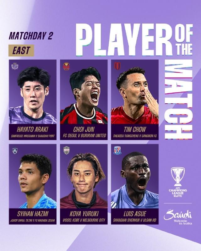 - 中超 | 周定洋、阿苏埃入选亚冠最佳球员