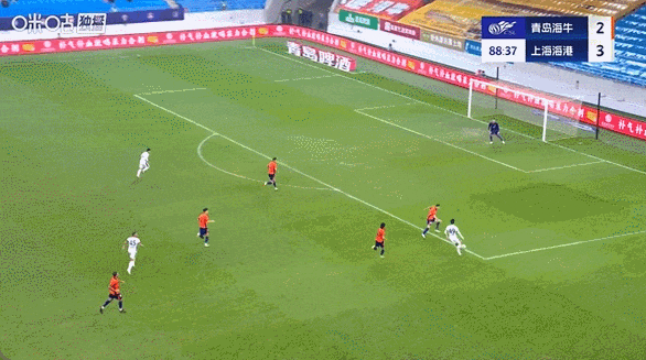 下半场第89分钟,李新翔右路内切,轻巧人球分过后推射破门,海港将比分变为4比2。第95分钟,青岛海牛的宋文杰补射入网,将比分最终改写为3比4。
