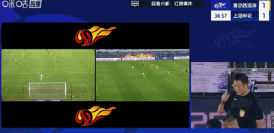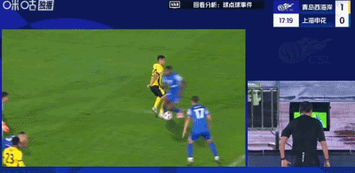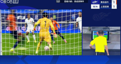 第16分钟,兰克尔-泽禁区内摔倒,主裁判王竞第一时间判点,VAR介入,王竞观看后取消点球,并向兰克尔-泽出示黄牌。