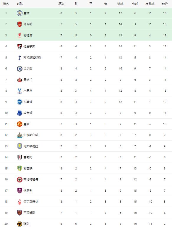 - 英超 | 随着曼城20埃弗顿,切尔西30,英超最新积分榜:阿森纳让出榜首