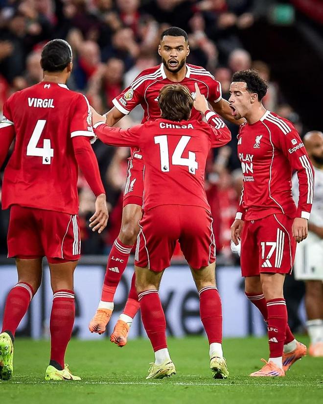 第78分钟,利物浦禁区内混战,维尔茨直塞,基耶萨禁区左侧横传,加克波门前推射入网,1-1!利物浦扳平。
