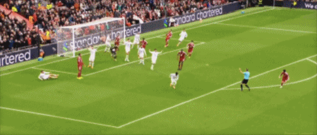 第14分钟,萨拉赫任意球传入禁区,范迪克头球攻门顶偏。