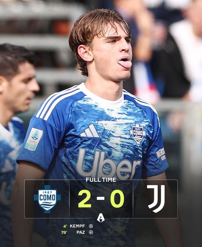 意甲第7轮爆出重磅冷门,科莫坐镇主场,2-0完胜意甲豪门尤文图斯,不仅送给对手6场不胜,法布雷加斯的球队更是积12分跃居意甲积分榜第五,仅仅比领头羊国际米兰少3分,意甲小黑马已经诞生。其中,21岁的阿根廷天才尼科·帕斯闪耀全场,1传1射导演胜利,而场边,温格与亨利亲眼见证了弟子法布雷加斯执教生涯的高光一夜。此役的败北对于尤文来说,多少有点“耻辱”的味道,斑马军团可是整整73年未输过科莫,上一次,还是在遥远的1951-52赛季,现如今,少帅法布雷加斯以一场2-0完胜,让这座小城雪耻这一尴尬纪录。比赛一开打,主场作战的科莫很快进入状态,仅仅开打4分钟,就闪电破门得分,主队开出战术角球,尼科·帕斯主罚短传,随后一脚精准传球送入禁区,埋伏在后点的肯普夫高高跃起头槌破门,科莫1-0尤文图斯,取得了梦幻般开局,法布雷加斯在场边紧握拳头,这一刻,他的战术布置得到了完美执行,并收获了结果。上半场结束,尤文的中场基本被科莫所压制,完全打不出像样的进攻。易边再战,尤文主帅试图通过换人调整节奏,但科莫的防守依旧稳如铁桶。到了第79分钟,尼科·帕斯在中场拿球后一路推进,面对布雷默的防守,他轻轻一扣晃开角度,左脚搓射划出完美弧线,皮球直挂死角,科莫2-0尤文图斯,基本锁定胜局,最终比分也定格在此。21岁阿根廷天才尼科·帕斯,成为了此役的MVP,打入1球外加1助攻,制造了全场2粒进球,表现完美。本赛季意甲至今,他7场贡献4球4助,场均制造进球数超过1球,科莫能排在意甲第五高位,尼科·帕斯功不可没;另外,最大的赢家当属西甲皇马,这位阿根廷小将出身皇马青训,今夏被外租至科莫,原本只是为了积累经验,没想到却踢出了顶级水准,老谋深算的佛洛伦蒂诺,还在合同中保留了2026年仅1000万欧的回购条款!这意味着,只要帕斯继续成长,皇马随时能以白菜价“召回亲儿子”。考虑到热刺今夏曾报价5000万欧却被拒,皇马这笔操作可谓稳赚不赔。