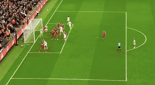 第32分钟,利物浦球员加克波边路传中,皮球打在门柱内侧,又弹出来了。