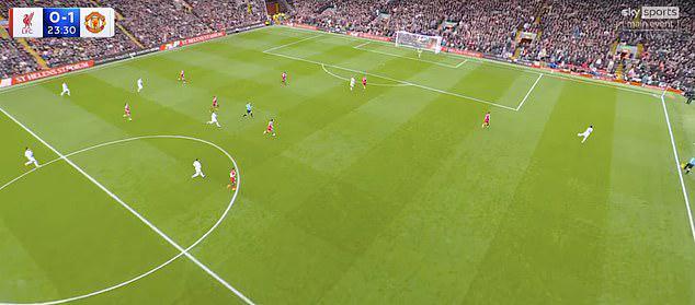 曼联巧妙利用阿马德-迪亚洛等人,将利物浦防线拖得七零八落。第26分钟,拉门斯大脚长传,范戴克赢得第一点争顶,但球落到了德利赫特脚下,他轻巧垫传给迪亚洛。