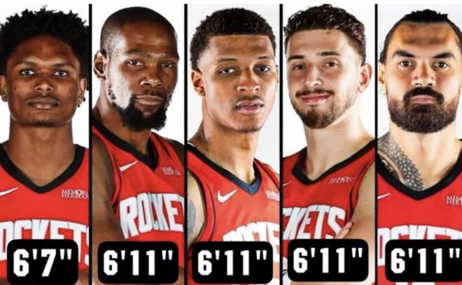 火箭五大首发第三:明天新赛季第一场比赛是火箭PK雷霆,火箭的首发阵容出炉,主帅乌度卡透露将派出杜兰特、申京、阿门-汤普森、亚当斯和史密斯的阵容!这套阵容的球员身高臂长,其中2.01m的阿门-汤普森已经是最矮的球员,其余四名球员的身高都是2.11m。