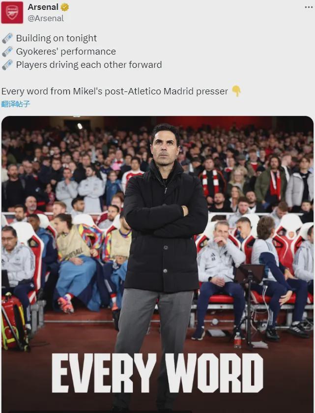 阿尔特塔出席了赛后新闻发布会,我们来看看阿森纳主帅的发言。谈谈你对本场比赛的看法吧:显然,我对我们对阵一支出色的球队时拿出了这样的表现和结果感到开心和自豪。当我分析对手时,我印象很深刻,今天他们的表现也一样,我知道比赛的难度,需要很多侵略性和耐心。中场休息时0-0,即便我们创造了2-3次好机会,我们也必须保持耐心,但同时我们需要在一些地方给他们造成更多伤害。今天梅开二度的哲凯赖什脸上露出了笑容,在他进球荒这段时间,你是否做了很多事情让他安心?我认为哲凯赖什值得,因为除了进球,我们过去几周还看到了他给球队带来了变化,在很多方面给球队提供了帮助,这些是毫无疑问的。关键是他自己要相信这点,他可以享受并自由地踢球。我还看到了队友们的反应,通过视频,你能看到他们也为哲凯赖什感到开心,因为这完全是他应得的。今天你对首发阵容做了两处调整,而这两人一起制造了进球,并且表现很出色,在选择阵容方面你一定很头疼吧?非常好,我认为斯凯利和马丁内利的表现是非凡的,从一开始就非常棒。我们再次以不同的方式使用了小伙子们,我认为我们需要努力让所有人都参与进来,相信自己有机会出场比赛。如果他们都能保持这个水平,那就是一种乐趣了,因为这将大大提升我们的训练质量,这意味着我们的标准会更高,竞争力会更强。谈谈斯凯利吧,他不得不非常耐心等待今天这样的机会,我认为他表现很好,你觉得呢?那要取决于你怎么看这个问题,如果你从去年12月到今天这个维度来看,在斯凯利这个年纪,在这种比赛里,他是非凡的。我之前也说过,斯凯利非常专注,非常谦逊,并且真的表现很好。当拥有这些品质,而又需要你上场时,你会做好准备,今天斯凯利真的非常棒。关于位置的竞争,在更衣室里是如何展露的?看起来这正推动每一个人达到新的水平,你感觉到了吗?这正是我们需要的,如果你看看欧洲的那些顶级球队,这就是他们的情况,我们也必须在一个有凝聚力的体系里管理好这点。所有人都明白他们会在不同的比赛中扮演不同的角色,重要的是赢得取胜的权利。这是最终目标,我们一直在追求同样的目标。你也知道,今年关于你们在焦点比赛中足球风格不大气的批评有很多,你认为对马竞打进4球是对这种批评的有力回应吗?是吧,但最终结果更重要。我们准备这种比赛时总是努力尽可能的杀伤对手,根据我们的球员,我们相信他们有能力从一开场就做到这点。然后,足球就是这样,有时候会起作用,有时候不会,今天我们非常高效,我真的很开心。以上是赛后新闻发布会。我也不说太多了,我认为观点都还是挺中肯的。哲凯赖什的话,希望这两个进球能帮助他找回自信,在英超也慢慢找到感觉!轮换的话,赛前我也说了,这才第三场比赛,还没确保进入淘汰赛的情况下,对手又是马竞,正常教练都不会大面积轮换的,轮换也是轮换后面而不是前面。等确保晋级和位次之后,给年轻人些机会吧,那时才是好时机。斯凯利这场比赛表现也不错,助攻马丁的那球,从中场转身摆脱,到推进到禁区前沿进攻,说实话队内还真没有其他人有这个本事,祖比门迪也不是这种风格。所以塔子别忘了左路还有斯凯利……其他没什么好说的了。