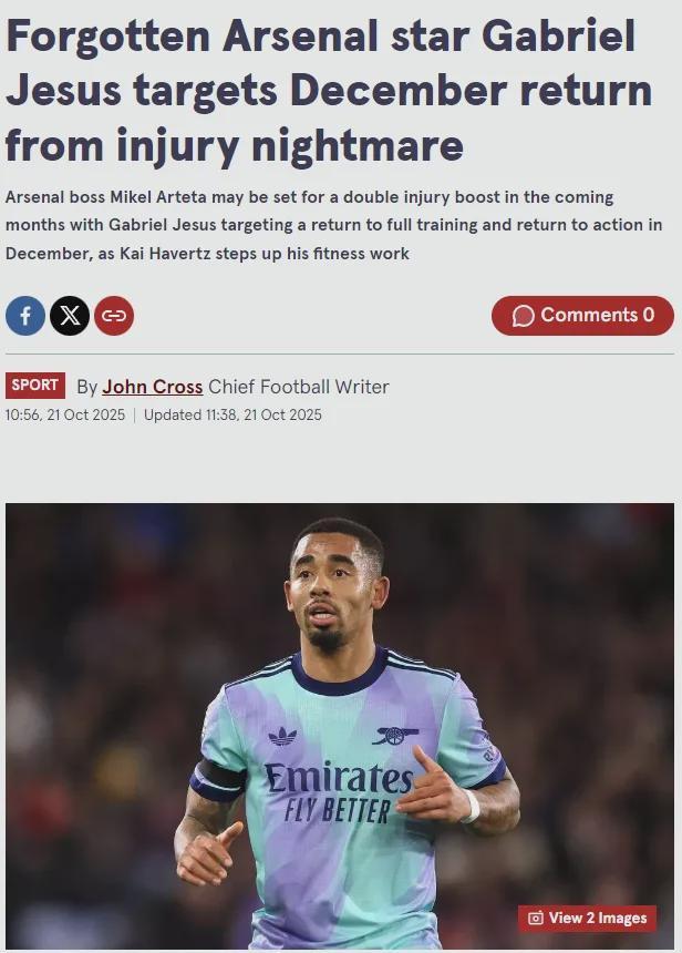 镜报蒋叔消息,热苏斯目标在12月份恢复完整训练并参与一线队的行动,这名前锋复出的决心让枪手医疗团队印象深刻,巴西人已经可以在室外参加一些训练课。此外,报道称哈弗茨将在几周内复出,预计1个月以内就可以再次首发出场。热苏斯的情况基本符合之前的报道。至于哈弗茨,说实话没有其他权威记者说他具体什么时候复出,蒋叔说1个月以内,我觉得这范围太宽泛了,1个月以内当然可能复出……我觉得下次国际比赛日之前哈弗茨应该能回来。主要是和哲凯赖什轮换下,哲凯最近比赛强度太大了,场场首发吃不消啊。话说这也是阿森纳现在的可怕之处,想想干倒马竞这支球队,居然热苏斯、哈弗茨、厄德高、马杜埃凯、因卡皮耶(刚复出)都还在养伤呢,这啥板凳深度……