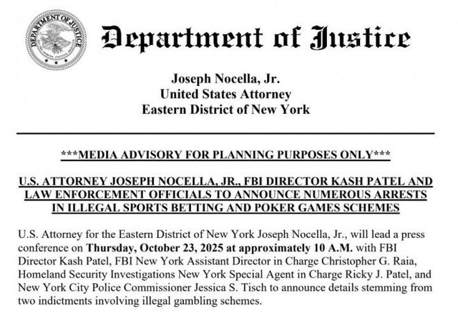 目前事情还没有完结,纽约东区和FBI局长帕特尔将在美国时间上午10点召开发布会,继续公布进一步人员名单。也就是说很可能还有多位NBA球员或者工作人员牵涉其中。