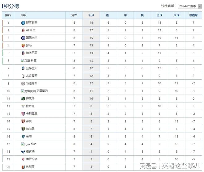 - 意甲 | 意甲最新积分榜:那不勒斯力克国米登顶,亚特兰大保住不败金身!