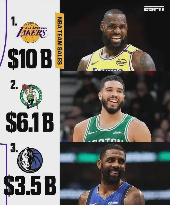 近年来NBA掀起了卖队潮,湖人之前,凯尔特人以61亿美元出售给由Symphony Technology Group联合创始人比尔-奇泽姆领衔的投资集团,独行侠以35亿美元出售给阿德尔森家族等等。 以上三支球队易主后,都有不小的变化,独行侠送走东契奇,凯尔特人解散24年总冠军阵容,那湖人......只能说詹姆斯本来是打算终老紫金军团的,然而如今情况有变。