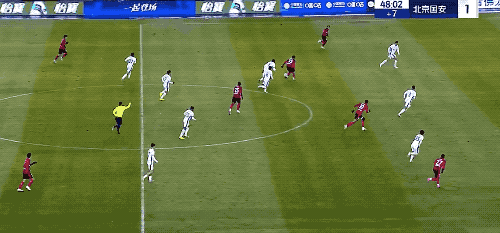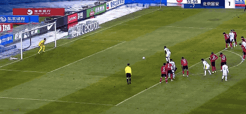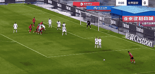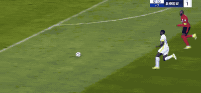 第19分钟,北京国安获得角球,塞尔基尼奥在无人盯防的情况下,头球破门。