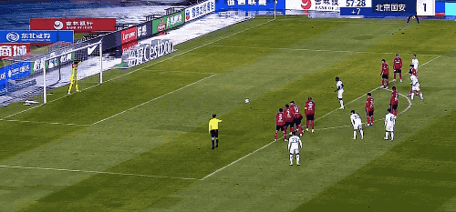 【精彩瞬间】第3分钟,长春亚泰获得前场任意球,西普里安打出低平球,皮球穿越人墙,被侯森没收。
