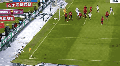 第18分钟,玄智健传中,谭龙的头球顶得太正,侯森没有移动将球没收。