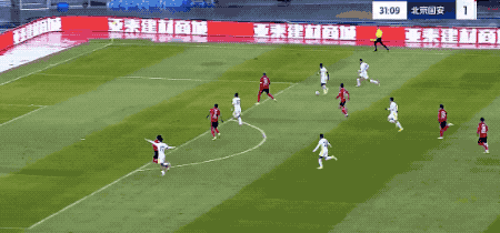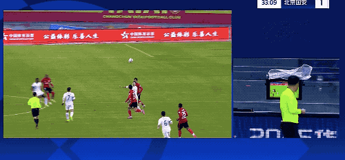第32分钟,法比奥将球分到边路,王刚下底传中,杨立瑜门前包抄铲射破门。但这一波进攻发动的过程中,曹永竞手球在先,进球无效。