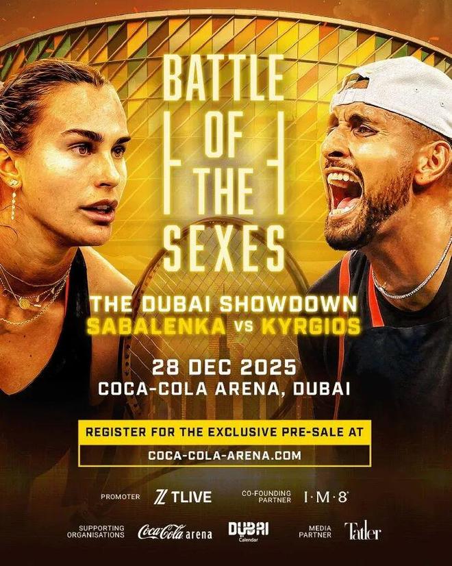 今年12月28日,27岁的白俄罗斯名将萨巴伦卡(现女单世界第一)将与30岁的澳大利亚选手克耶高斯(现男单世界排名第652位)在阿联酋迪拜进行一场“性别大战”表演赛。比赛由大坂直美创立的经纪公司操办,两人都是旗下球员。