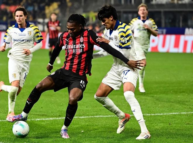 作为意甲的老牌劲旅,帕尔马前10轮过后仅仅赢得1场胜利,比降级区只高出1分。阿莱格里还是一如既往实行自己的3-5-2体系:恩昆库、莱奥双前锋搭档;优素福-福法纳、莫德里奇、里奇联手三中场;双翼分别是萨勒马克尔斯、埃斯图皮尼安;德温特、加比亚、帕夫洛维奇构建3后卫,门将自然还是迈尼昂。米兰开局势头不错,第12分钟,恩昆库禁区前沿接球后回敲,萨勒马克尔斯毫不犹豫闪开角度打出贴地斩,皮球直接滚入网窝,1:0!第18分钟,帕尔马角球机会造成米兰门前混乱,库特罗内将球撞进球网,但越位在先。第25分钟,萨勒马克尔斯右路持球自信穿裆过掉勒维克后被补防的恩迪亚耶撞倒在禁区,主裁判观看回放后判罚点球,莱奥主罚命中,2:0!