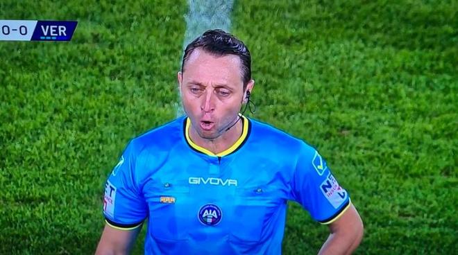 比赛临近尾声,主裁阿比索判罚维罗纳37号球员贝拉-科沙在本方禁区对莱切前锋卡马尔达犯规,在经过VAR回看后,阿比索向全场观众宣布判罚时出现了口误:“经VAR回放,乌迪内斯37号球员在禁区内并未犯规。最终判罚:点球取消。维罗纳,对不起!维罗纳,对不起!”在搞错队伍后,阿比索也是向维罗纳替补席表达了自己的歉意。