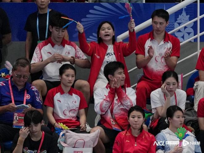 全红婵在看台观赛,为队友加油呐喊。
