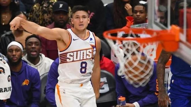 阿伦在当天的表现,简直像开了“外挂”。他仅用27分钟就轰下42分,更可怕的是效率。17投12中,三分球15投10中,命中率高达66.7%。每投进一个三分,就像在给坎宁安的“最佳之争”泼一盆冷水。第四节刚打3分钟,他连拿7分并命中第十记三分,直接让比赛失去悬念,下场时太阳主场球迷全体起立为他欢呼。这记三分不仅创下他的生涯新高,更打破了太阳队史单场三分纪录。