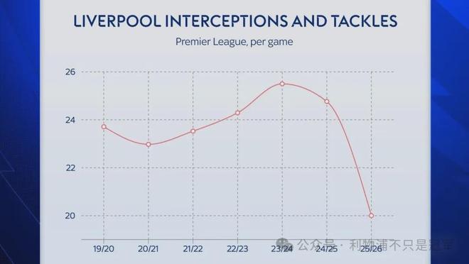 而排名最低的是布伦特福德在对曼城比赛中创造(37.8%)。可利物浦与布伦特福德比赛时,身体对抗上可没占什么便宜,可见利物浦在这方面确实有待提升。2、拦截和抢断数据本赛季利物浦的场均拦截和抢断数据明显低于此前6个赛季。