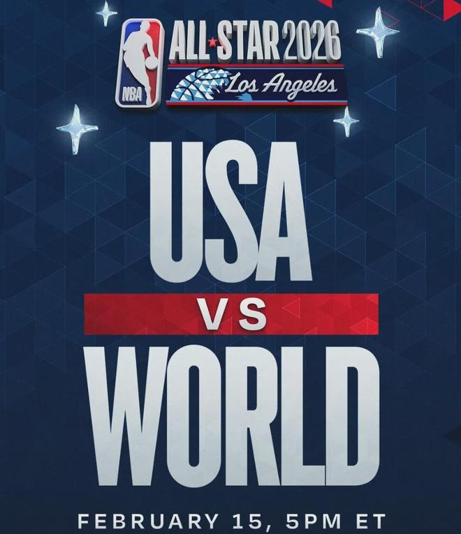 今天,NBA官宣,本赛季的NBA全明星正赛,也就是2026年全明星正赛,要启用美国队VS世界联队的全新赛制了。其实这一套在全明星新秀赛上已经玩过了,效果还可以,于是打算用在全明星正赛上。