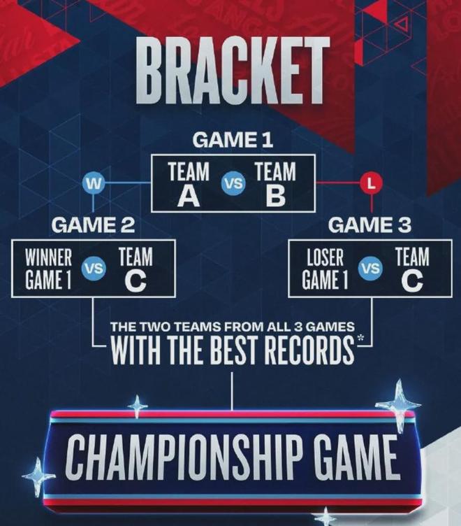 这次的全明星正赛还是采用三队循环的打法,两支美国明星队和一支国际明星队,打4节比赛,每节12分钟,每队至少8名球员。A队先打B队,胜者去跟C队打第二场,负者跟C队打第三场,战绩最好的两队去打第四场冠军赛。