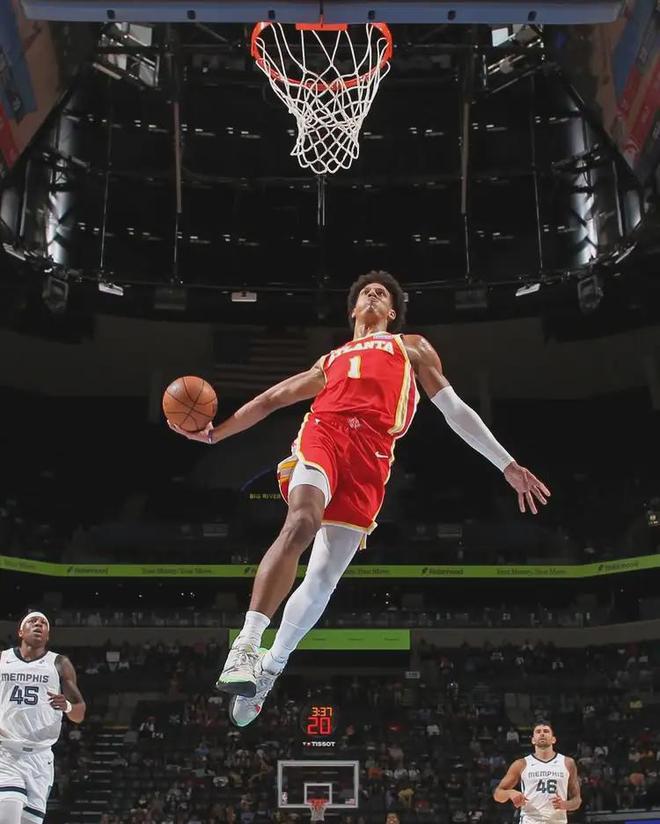 同样是那场比赛,老鹰球员奥孔古18投11中,狂轰32分11篮板2助攻2抢断3盖帽。杰伦-约翰逊和奥孔古同场均砍下30+10,成为老鹰队史最年轻的二人组。特雷杨的处境很尴尬,今年休赛期,老鹰拒绝给他4年2.29亿美元的续约合同。