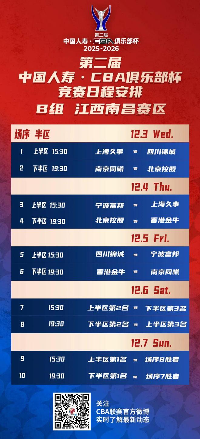 - CBA | 第二届CBA俱乐部杯小组赛赛程出炉