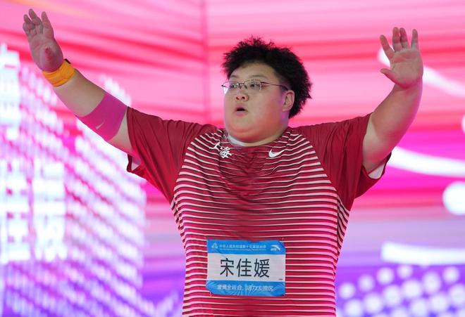 11月16日晚,粤港澳全运会田径赛场,上海队选手宋佳媛以18米61的成绩收获第四名,距离前三名一步之遥。