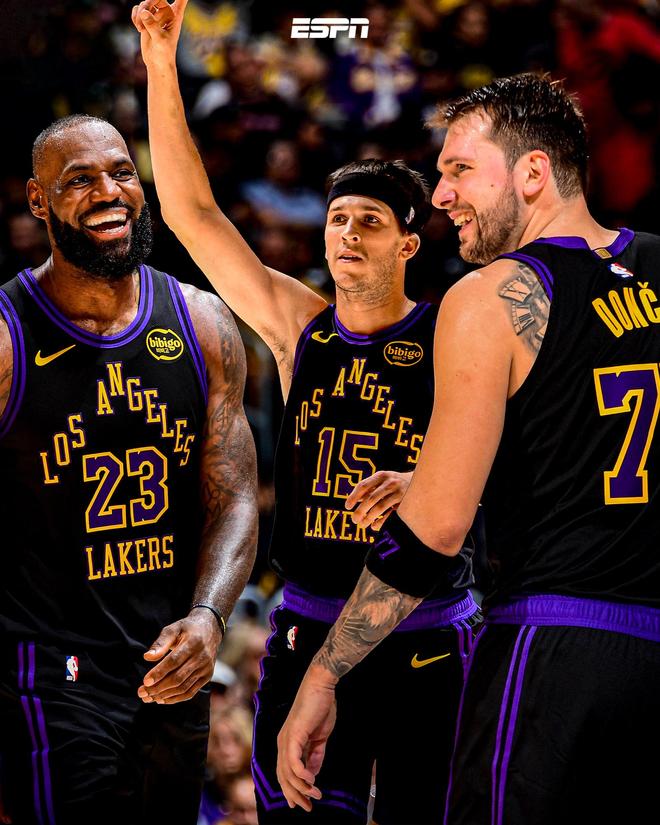 回顾本场比赛,湖人三巨头表现都很亮眼,东契奇22投11中,得到37分5篮板10助攻4抢断。里夫斯11投7中,罚球12罚11中,得到26分5篮板1助攻1抢断。和预想中一样,即使詹姆斯回归,东契奇和里夫斯依旧作为湖人的持球核心,承担着更多的持球进攻重担,而詹姆斯则把更多的精力放在防守,无球进攻,只是在需要的时候接过球队的组织权,为队友送出精妙的助攻。