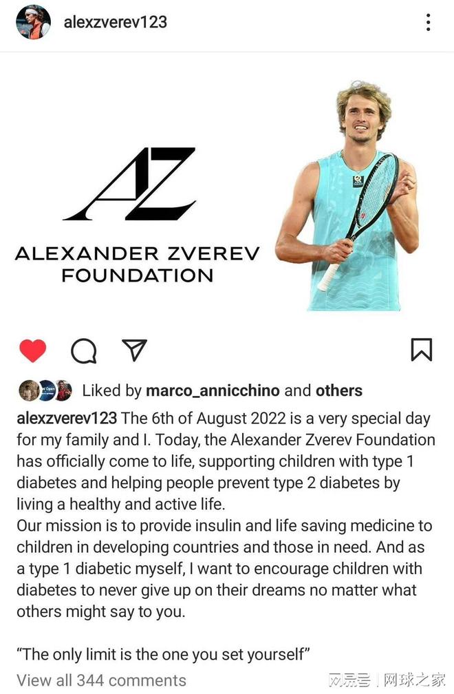 11月18日,兹维列夫在德国参加了一场特殊的表演赛。特殊之处不仅在于这是一场慈善活动,更因为球网两侧的选手——兹维列夫与帕特里克·扎赫拉伊,都是1型糖尿病患者。