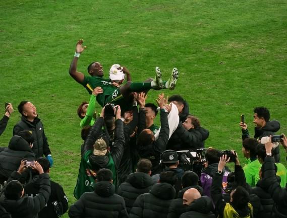 11月22日,2025中超联赛收官战,北京国安主场5-1大胜梅州客家。北京国安球员何宇鹏在社交媒体里表示:“能在国安踢球真的很幸福,法比奥实至名归的金靴太帅啦。”