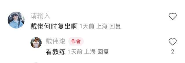 于汉超退役,由于将要参加教练培训班,无缘最后一场亚冠,空出一个替补席名额,球迷想起了戴伟浚。冬训受伤之后,他已经跟队训练了很长时间,迟迟不能进入大名单。有球迷在社交媒体上评论何时能够复出,戴伟浚回复到:看教练,这意味着对球员本身已经准备了,得看主教练斯卢茨基的想法了。赛季最后一场,也应该给小戴一个机会了,大伤之后需要一场比赛适应。