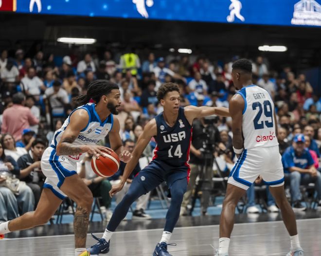 本场面对与尼加拉瓜男篮的对决,美国男篮首节就火力全开,轰下本场两队唯一一次单节30+得分,首节结束美国男篮已经取得31-20领先11分优势。第二节比赛,美国男篮继续攻防压制,他们单节28-18净胜10分,上半场结束美国男篮已经扩大59-38领先21分优势。前两节比赛,美国男篮33中19效率不俗,其中三分19中9,外加罚球15中12,比彻姆7中6高效得到17分,奈特11分。尼加拉瓜男篮37中14,其中三分6中3与罚球14中7,奥米尔16分7篮板与鲁伊斯11分7助攻。