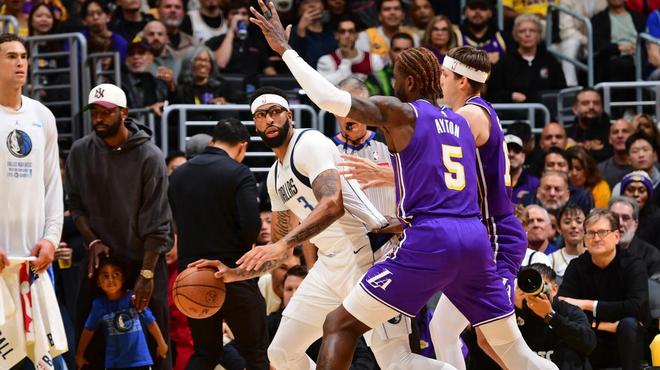 北京时间11月29日,NBA杯小组赛西部B组迎来了湖人与独行侠的对决。此役,斯马特伤停,艾顿伤愈复出,并且携手詹姆斯、八村塁、里夫斯、东契奇出任首发。艾克萨姆因伤赛季报销,欧文、莱夫利继续伤停,安东尼戴维斯伤愈复出,并且携手弗拉格、PJ华盛顿、克里斯蒂、内姆哈德出任首发。2连败的独行侠排名西部倒数第2,期待触底反弹。5连胜的湖人高居西部第2,目前斗志正酣。浓眉哥、东契奇分别对阵旧主,是本场比赛的一大看点。詹姆斯与华盛顿、弗拉格等潜力锋线的对决,也让人充满期待。詹姆斯创NBA历史第1神迹,湖人力擒独行侠!东契奇35+11,里夫斯惊艳,浓眉12分!全场比赛回顾首节开打,里夫斯轰进远投,东契奇助攻詹姆斯背身空接扣篮,华盛顿暴扣,克里斯蒂外线取分。艾顿2罚1中,内姆哈德中投得手,艾顿扣篮。里夫斯反击暴扣,基德请求暂停。克里斯蒂与东契奇对射三分球,浓眉、艾顿各有空接扣篮,东契奇上篮得分,威廉姆斯连投带罚得到4分还以颜色。华盛顿、克里斯蒂合力防守东契奇