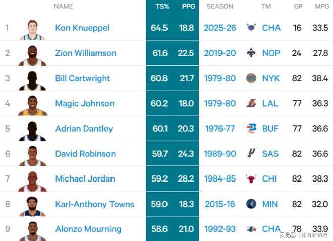 截至现在,克尼佩尔的真实命中率高达64.5%,在NBA新秀里那可是独占鳌头,说是NBA历史上真实命中率最高的新秀球员都不为过。排在他后面的,那可都是NBA响当当的大神级名宿(胖虎咱就先不把他算进去啦)。还有哦,克尼佩尔目前场均能投进3.4个三分球呢!NBA新秀赛季的三分纪录,是国王队的基根 - 穆雷创下的,单季投进206个。要是克尼佩尔能一直保持现在这状态,那新秀三分纪录不得被他“哐哐”往上提啊!场均3.4个,打满82场比赛,那不得投进278个,这纪录不得被他“踩在脚下”啦!