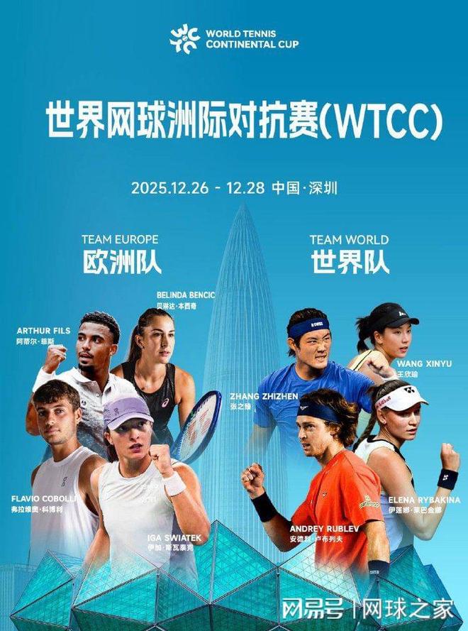 我们再把目光转向深圳。再有20多天,世界网球洲际对抗表演赛(WTCC)将在深圳举行。这项表演赛邀请了波兰名将斯瓦泰克、哈萨克斯坦名将莱巴金娜、瑞士名将本西奇、俄罗斯名将卢布列夫、意大利新星科博利、法国新星菲斯等球星和张之臻、王欣瑜两位中国球员出战。八位球员将分成欧洲队和世界队两组,进行单双打对抗表演赛。
