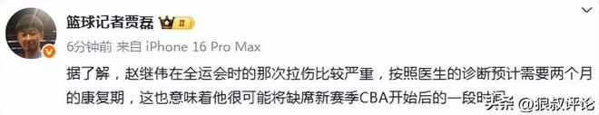 - CBA | 辽宁男篮遭打击!赵继伟预计伤停2个月将无缘CBA杯赛及赛季初比赛