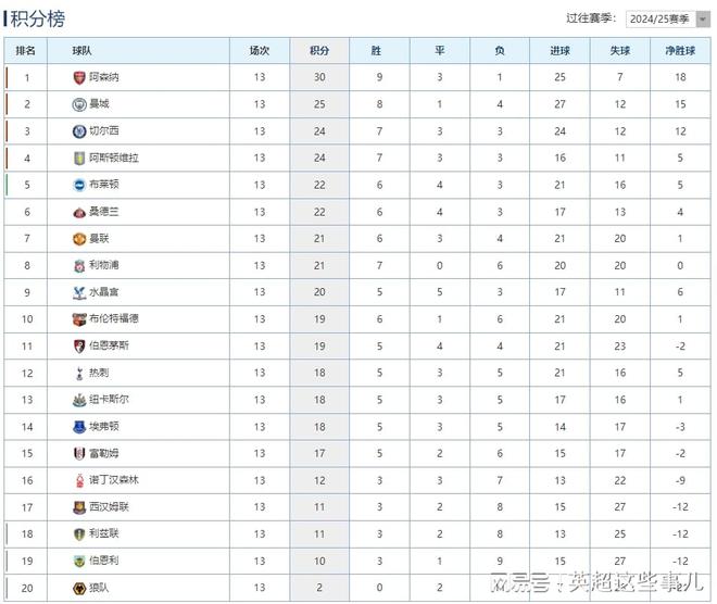 - 英超 | 英超最新积分榜:阿森纳战平蓝军5分领跑,曼联客场逆转攀升第7!