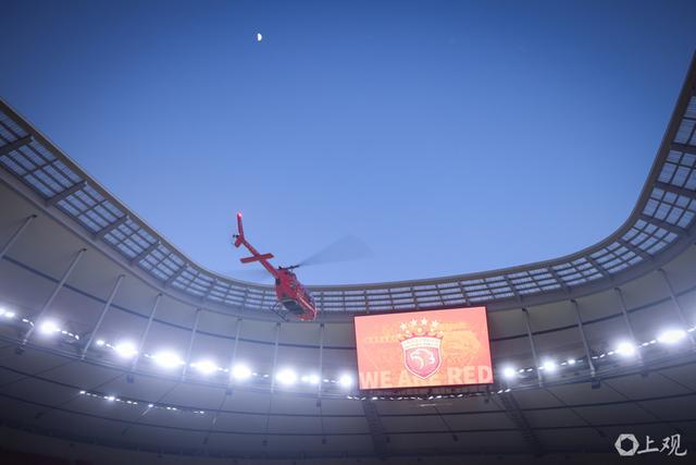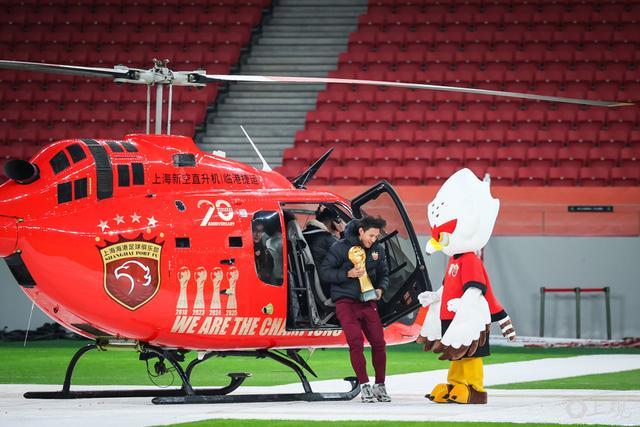 - 中超 | 中超首创+震撼!海港夺冠庆典:一架印着队徽的直升机送来火神杯