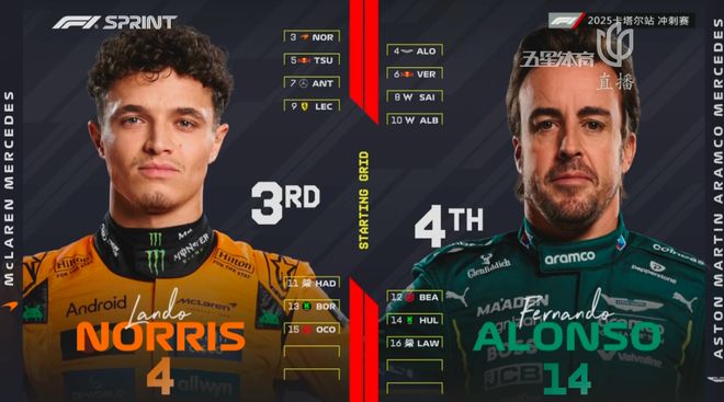 稍早结束的冲刺排位赛上,几位还处在争冠行列的车手中,皮亚斯特里获得杆位,诺里斯第三发车,维斯塔潘仅仅排在第6位。