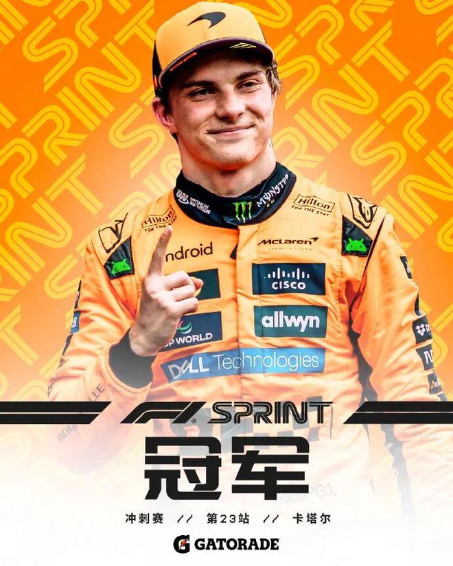 2025赛季F1卡塔尔大奖赛迎来了冲刺赛的争夺,最终,皮亚斯特里第一个冲过终点线获得冲刺赛冠军!拉塞尔第二,诺里斯第三,维斯塔潘第四。