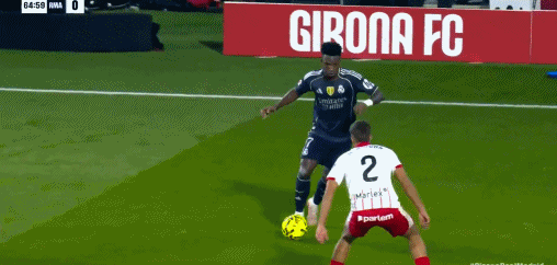 易边再战皇马还是迟迟未能把握机会,第57分钟反而是差点又丢球,赫罗纳中路快速反击,瓦纳特后排跟进接球突入禁区获得近距离半单刀良机,只是他没有把握住,推射球门右下角被库尔图瓦奋勇扑出。第62分钟,皇马中路强攻,维尼修斯禁区左侧接球近距离“单刀”捅射得手,只是这球他越位在先,进球也被吹掉。3分钟后维尼修斯左侧再来,这次他在禁区边上强行突破杀入禁区,被过掉的林孔背后拉倒维尼修斯,主裁果断吹罚点球。姆巴佩操刀主罚一蹴而就,皇马1:1扳平比分。第78分钟,皇马左路快速反击,维尼修斯带球突入禁区右脚大力兜射,皮球稍稍高出横梁出了底线。错过这次机会后皇马无力再改写比分,最终客场1:1战平赫罗纳,连续3个客场对阵弱旅都无力赢球,遭遇3连平。